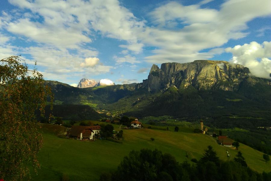 Immer wenn man aus dem Fenster des Moosbachhofes am Ritten blickt, hat man den Berg mit all seiner Pracht vor sich. Den wuchtigen Berg, dessen Gipfelfläche im Winter eine eisige Schneewüste und im Sommer eine grüne, blühende Wiese ist und dessen spitze Zacken dem Berg eine ganz besondere unverwechselbare Linie geben.