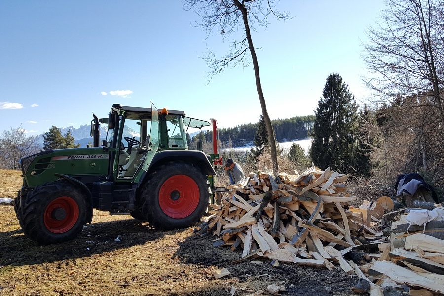 Das erste Mal wird dem Bauern beim Fällen der Bäume warm, denn dazu gehört auch das Entasten des Stammes, was zwar heutzutage mit der Motorsäge recht zügig von der Hand geht, aber immer noch sehr kräftezehrend und anstrengend ist. Oft müssen auch Bäume, welche sturmartigen Winden, oder der Schneelast zum Opfer gefallen sind, mit einer Seilwinde aus dichten Wäldern gezogen werden, was ebenfalls sehr schweißtreibend für die Bauersleute ist. Wichtig ist dieses Ausforsten der Wälder, dass sich keine Schädlinge im toten Holz vermehren können und dass ein gesunder Wald nachwachsen kann. So ist auch bei der Waldarbeit der Bauer als solcher, sehr einflussreich auf das idyllische Erscheinungsbild unserer Südtiroler Waldlandschaft.