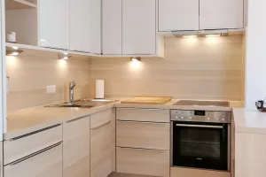 Le cucine degli appartamenti sono completamente ammobiliate e attrezzate di tutto il necessario ( macchinetta del caffè, lavastoviglie, fornelli, forno, bollitore per l’acqua, tostapane, etc…).