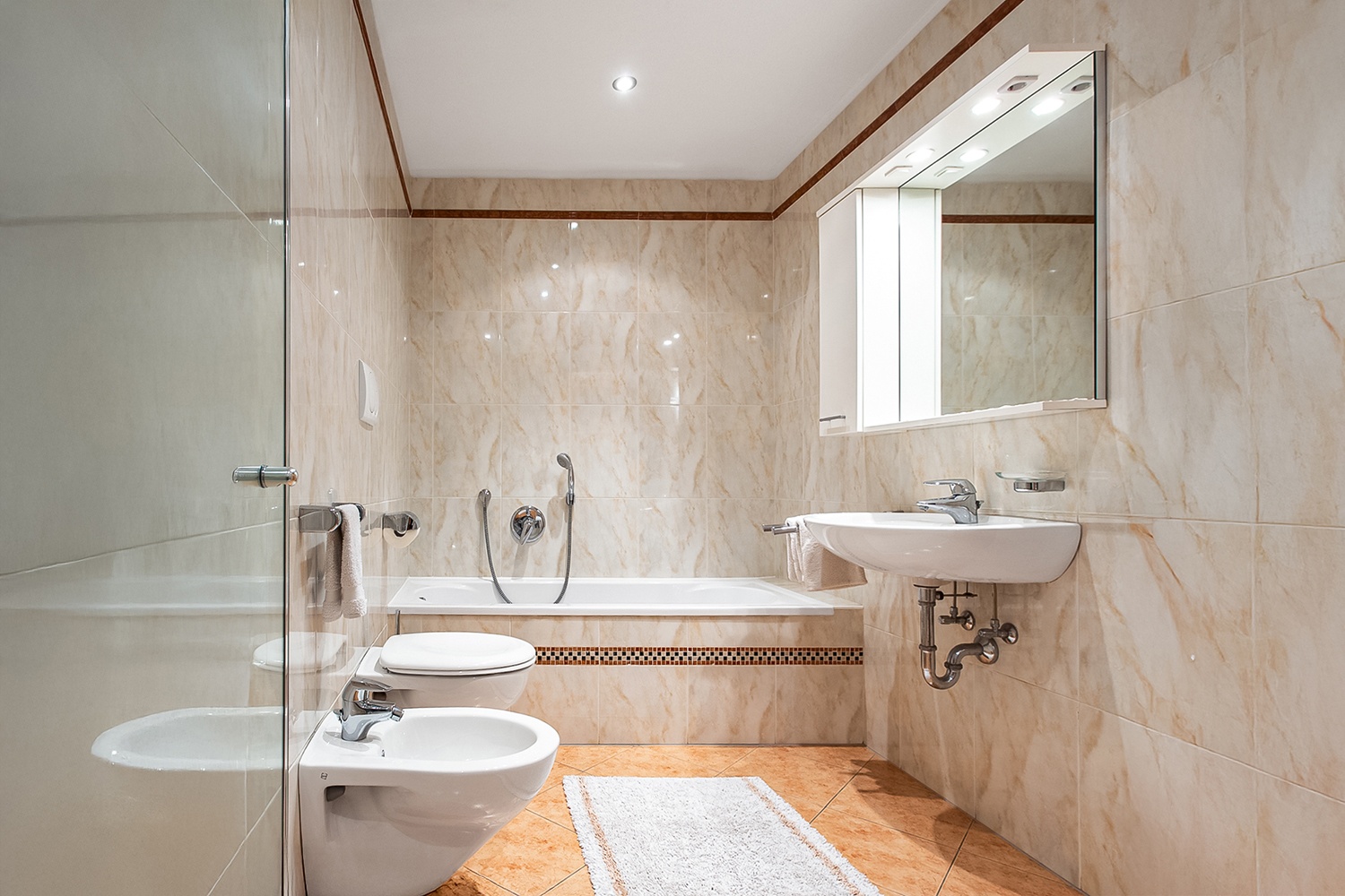 - Bagno con doccia, vasca da bagno, bidet e WC