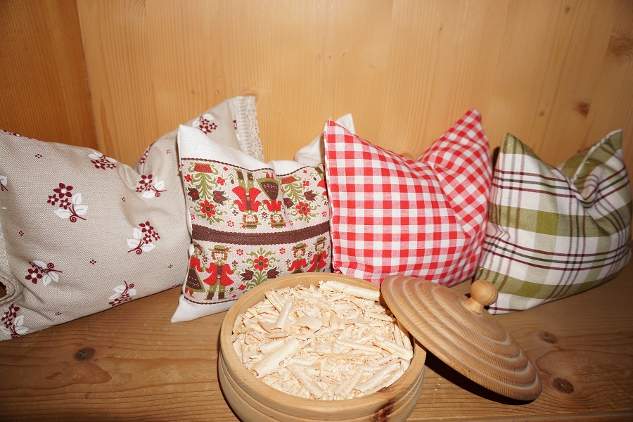 Noto per le sue qualità benefiche, questo legno pregiato e profumato è ambito sin dall’antichità. Diverse analisi e ricerche tra cui il rapporto del 2001 dell’Istituto per diagnosi non invasiva, Johanneum Reserarch di Graz, attestano al legno di cirmolo effetti positivi sulla qualità del sonno e la frequenza cardiaca. Il rapporto citato dimostra che dormire in un letto di cirmolo riduce la frequenza dei battiti cardiaci, aumenta la profondità del sonno e migliora la ripresa del sistema nervoso autonomo. In mancanza di un letto di cirmolo, un’efficace alternativa per beneficiare degli effetti positivi del legno, è rappresentata dai cuscini imbottiti con trucioli di cirmolo. Oltre al legno, anche la resina del cirmolo, ricca di oli essenziali, è usata per scopi terapeutici. Si utilizza per le distorsioni o in forma di pomata revulsiva mentre le sue proprietà purificatrici e vitalizzanti ne fanno un popolare sostituto dell’incenso.