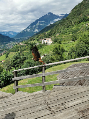 L'esibizione di uccelli rapaci si trova nelle vicinanze di Dorf Tirol, un pittoresco paese vicino a Merano, facilmente raggiungibile dal Renon in auto o con i mezzi pubblici. È possibile combinare la visita con una passeggiata nella regione o nel villaggio di Dorf Tirol.